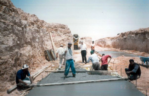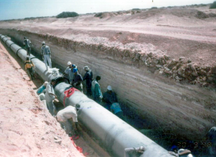 Chemistry and Technology Fin, in Wadi Al-Fareg, was involved in the adjoining cast iron pipes of large diameters to connect the main line to the Great Man Made River.